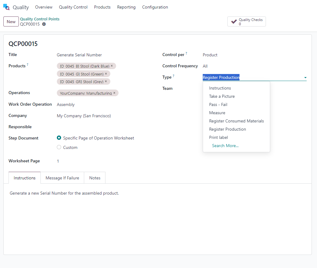 Complete quality checks directly from manufacturing or inventory orders, without opening the Quality app.