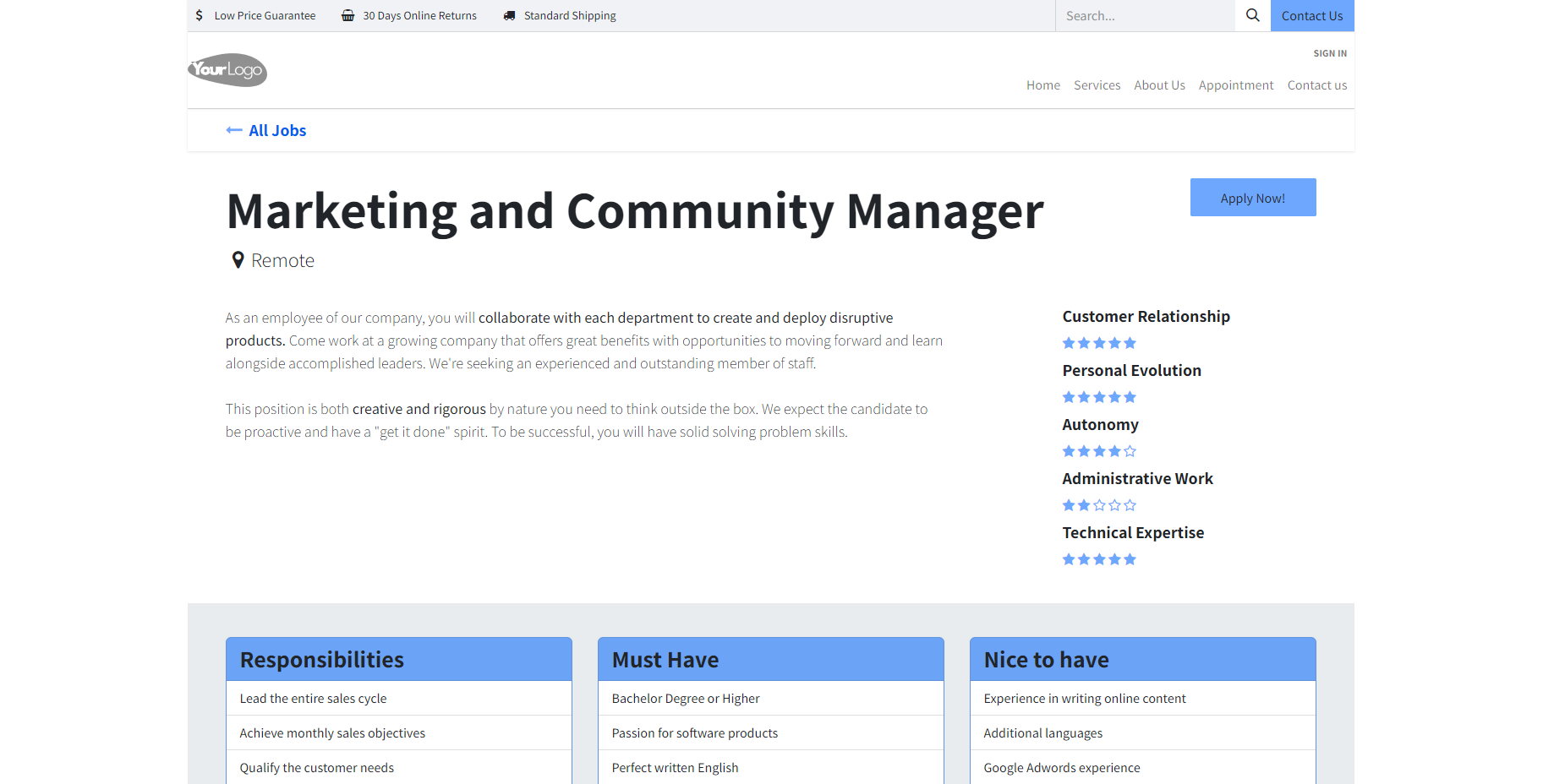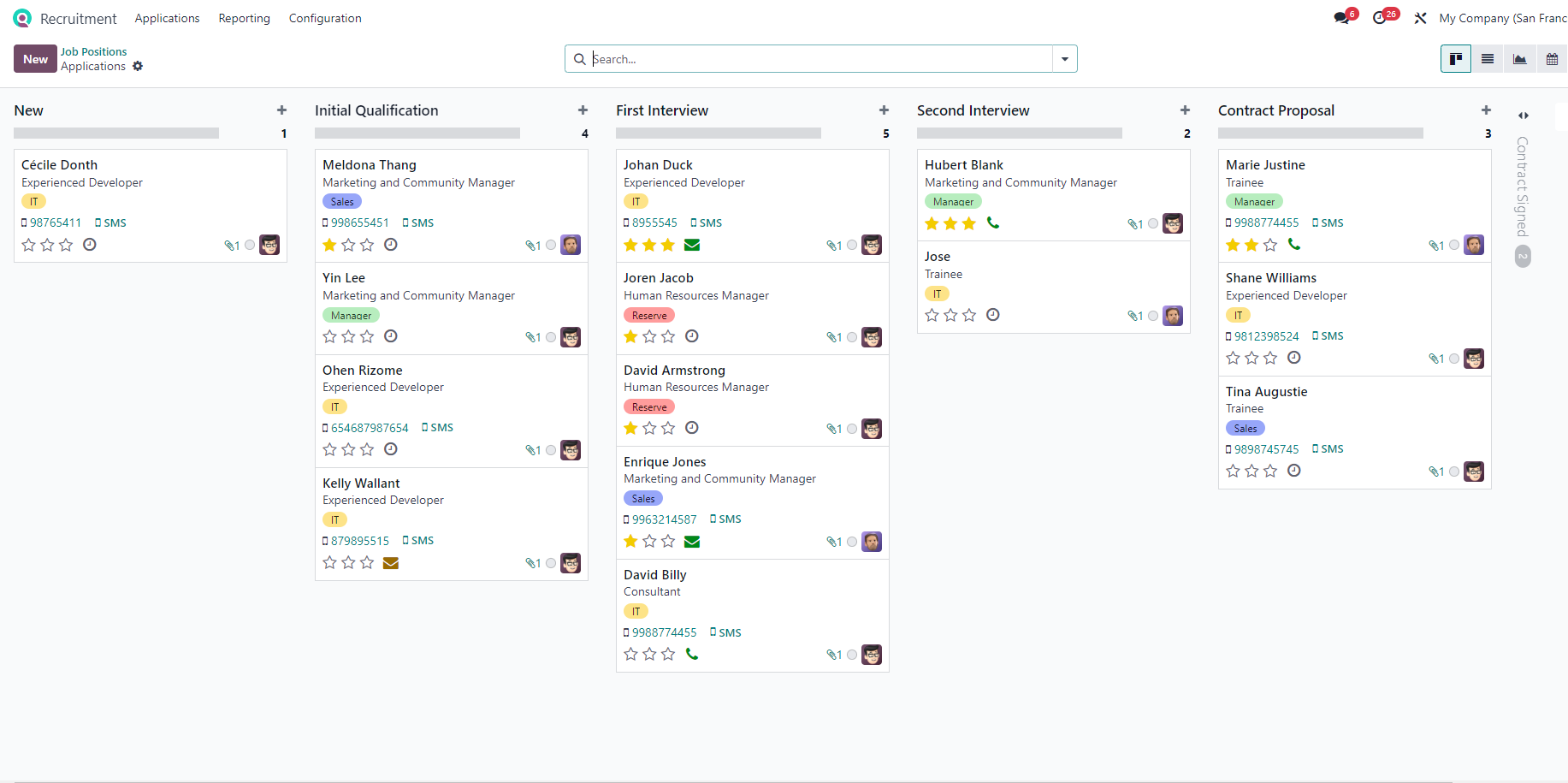 Create and manage job positions in the system, keeping track of all applications received and their progress through the selection stages.